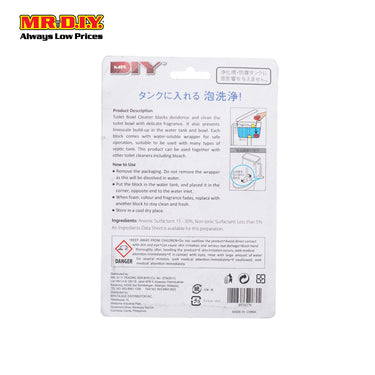 Features: -Disinfecting toilet cleaner tablet cleans -Freshens bowls with every flush. -Blue scent & colour. -Suitable for bathroom,toilet usage -Suitable for home,office,school,etc. -Contains chlorine -For deodorizing toilet bowls of flush toilets -Suitable for cleaning and deodorizing water-filled areas of toilet bowls