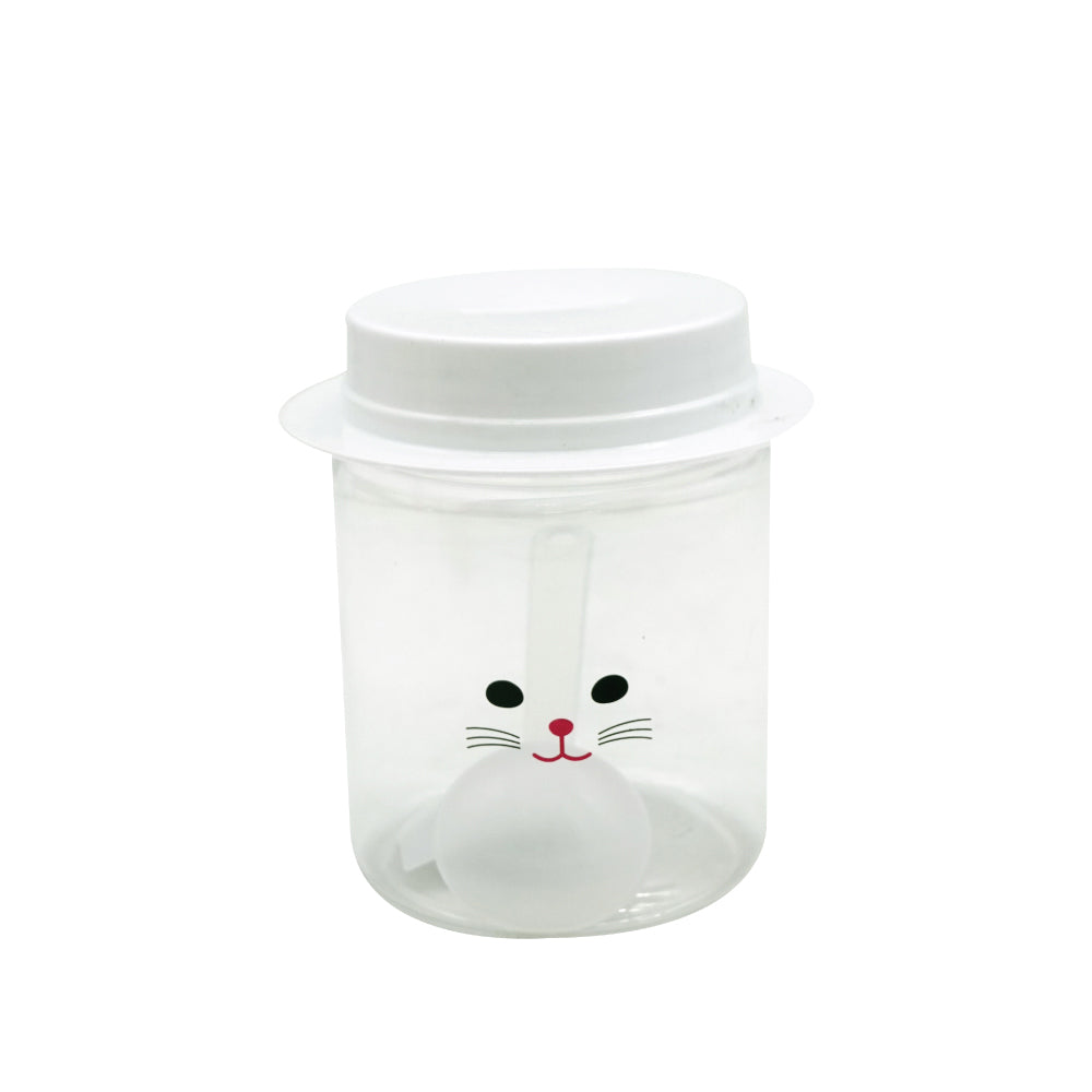 VRP Plastic Jar Hat With Spoon in a charming cat design, perfect for adding a touch of whimsy to your kitchen decor. Here are the key features of this cat-themed plastic jar: