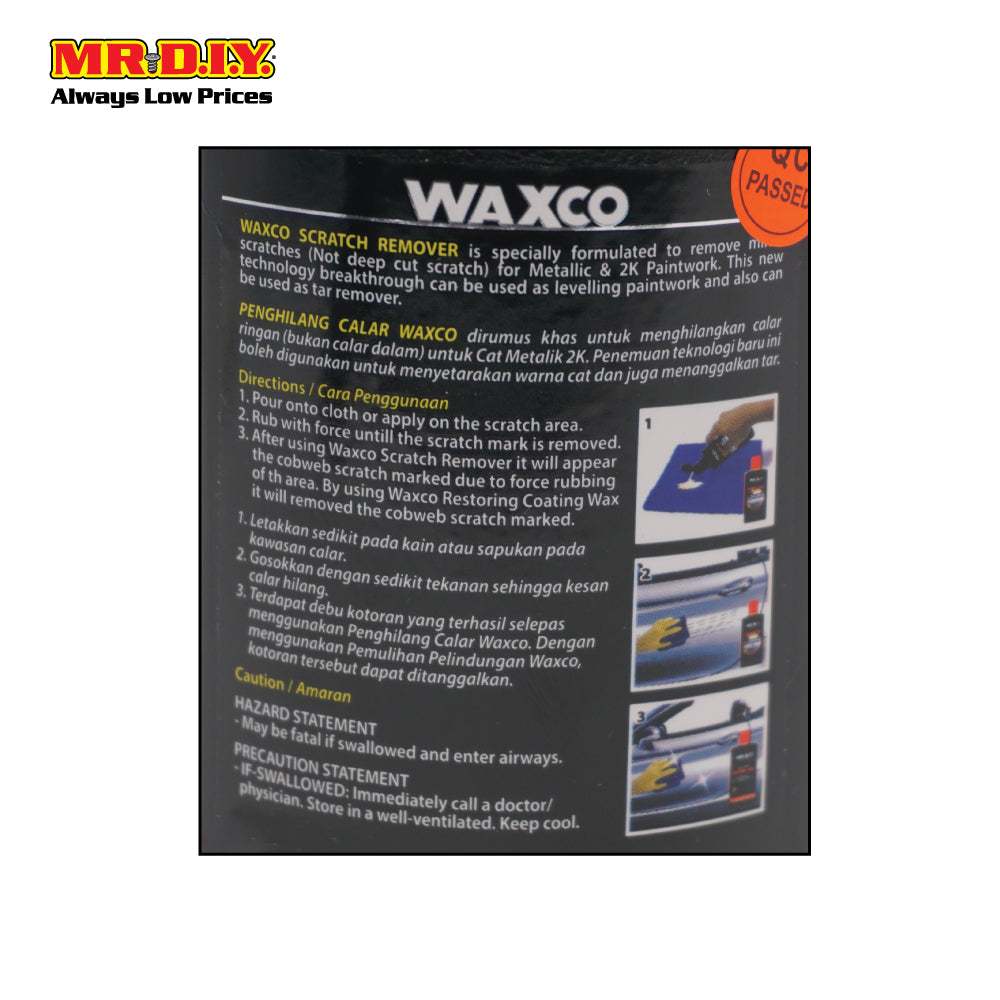 • Specially formulated to remove minor scratch (not deep cut scratch)