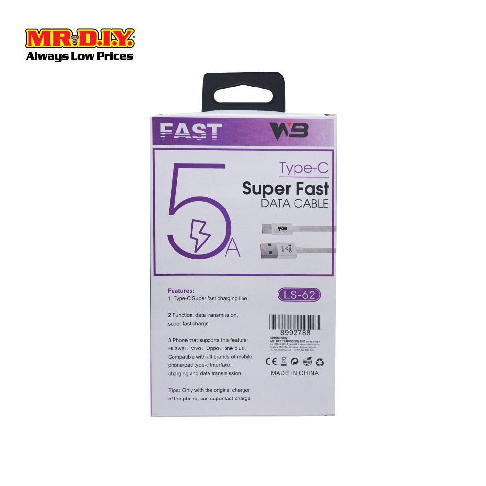 Fast Charging: The WB USB Type-C Cable 5A (1m) is engineered to provide rapid charging for your devices. With a 5A current, it ensures that your gadgets are powered up quickly and efficiently.